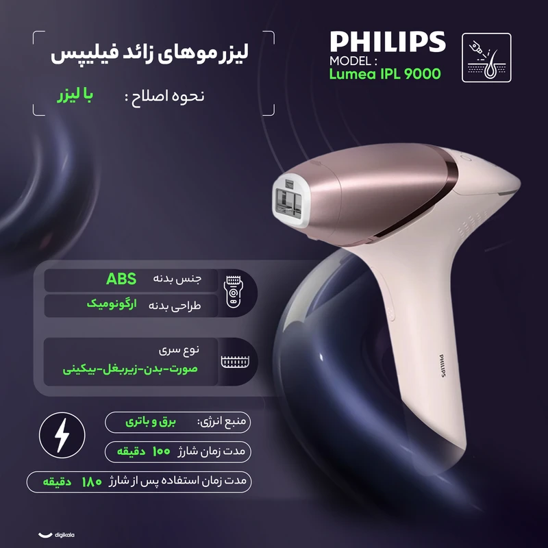 لیزر موی زائد فیلیپس لوما BRi947 سری 9900 شات نامحدود شارژی و برق مستقیم