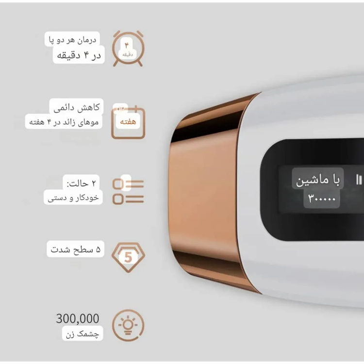 این دستگاه لیزر از فناوری پیشرفته IPL بهره میبرد؛ تکنولوژیای که با استفاده از پالسهای نوری قدرتمند، فولیکولهای مو را هدف قرار میدهد و باعث کاهش تدریجی رشد مو میشود. مهمترین مزیت این روش، بدون درد بودن و ایمنی بالا است. با استفاده منظم، طی چند هفته شاهد کاهش قابلتوجه موهای زائد خواهید بود و پوست شما صافتر و روشنتر به نظر میرسد.