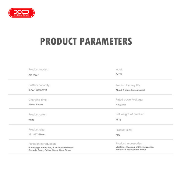 ماساژور برقی XO مدل FG07 انتخابی عالی برای افرادی است که به دنبال ماساژ راحت، قدرتمند و متنوع در خانه یا محل کار هستند. این دستگاه با بهرهگیری از 6 سطح شدت قابل تنظیم و 5 سری ماساژ مختلف (سری صاف، دانهدار، کفساز، موجدار و بیان استون) به شما این امکان را میدهد تا ماساژی متناسب با نیاز و سلیقه خود تجربه کنید؛ چه برای رفع خستگی، چه کاهش درد عضلات و یا بهبود گردش خون.ساخته شده از ABS با کیفیت بالا، بدون از دست دادن سبکی، دوام بالایی را ارائه میدهد. با توان اسمی ۲۴ وات و ولتاژ ۷.۴ ولت کار میکند که برای استفاده شخصی ایمن و کارآمد ایدهآل است.
